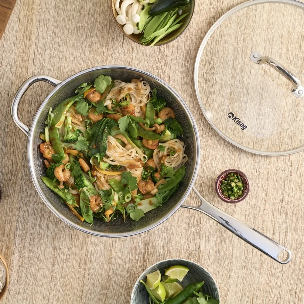 Avec cette poêle ultra-polyvalente, tout devient possible en cuisine. Son revêtement antiadhésif innovant et robuste permet de saisir facilement les légumes, la viande et le poisson sans ajout de matière grasse – idéal pour la cuisine asiatique!